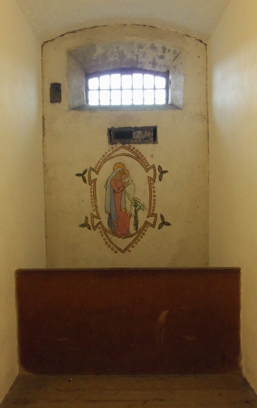 Grace Plunkett (nee Gifford) was imprisoned in this section of the Gaol for several months in 1923. A talented artist, she painted a mural of the Madonna and Child on the wall of her cell, where it still remains.